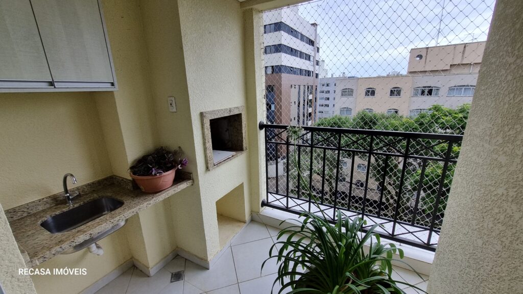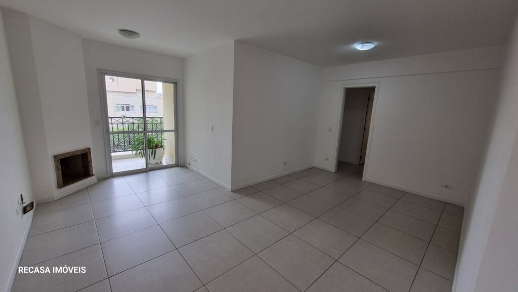 Sendo sala ampla para dois ambientes, (lareira/sala de jantar e estar), cozinha com armários, lavabo, bwc social, área de serviço separada da cozinha, sacada c/ churrasqueira, 03 quartos sendo 01 suite, 02 vagas de garagem.